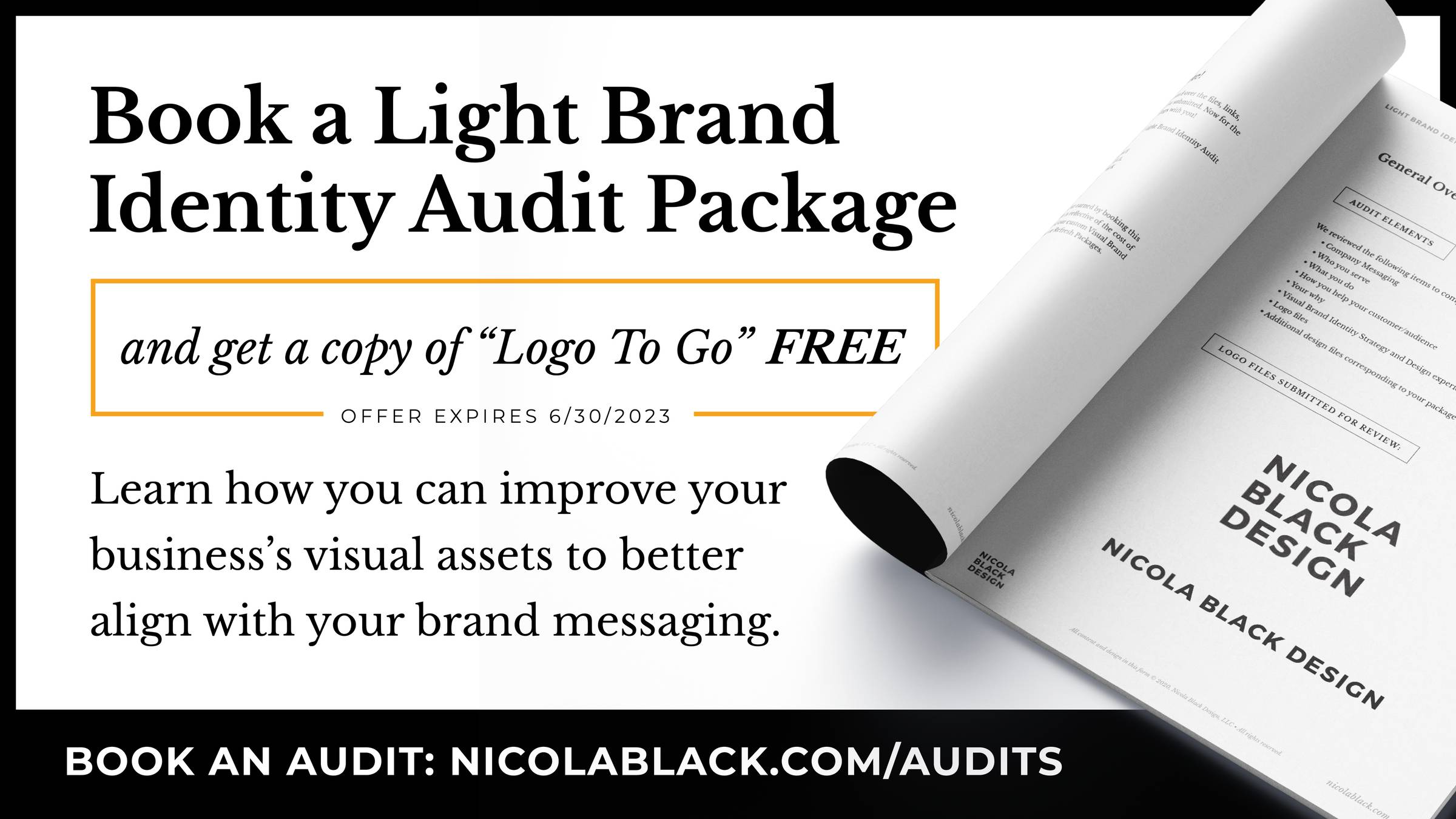 Last week, I shared that I’m celebrating the one-year anniversary of my Light Brand Identity Audits. To celebrate, I’m including a FREE copy of my eBook, “Logo To Go: A DIY Visual Brand Identity Assistant,” with every Audit booked between now and the end of June.